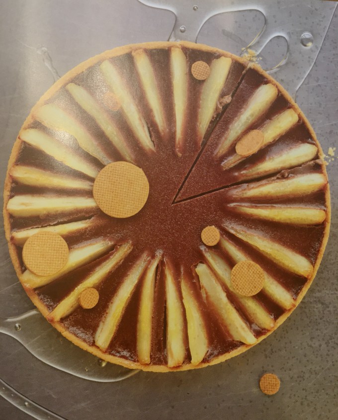 In den vorgebackenen Boden zuerst die gegrillten Birnen gleichmäßig verteilen. Vorsichtig die Schokoladenkrem darauf verteilen. Man kann die Birnen aber auch gerne hinstellen (siehe Bild oben). Das sieht natürlich optisch super aus. Aber der Kreativität ist keine Grenze gesetzt. Ist die Schokoladenkrem gleichmäßig verteilt, wird die Tarte in den 150 Grad heißen Ofen weitere 10-15 Minuten fertig gebacken. Sie ist fertig, sobald die Schokoladenkrem gestockt ist. Das kann man sehr gut testen, indem man mit dem Finger vorsichtig die Oberfläche tastet. Bleibt nichts mehr kleben, ist die Tarte fertig gebacken. Aus dem Ofen nehmen und ca. 30 Minuten auskühlen lassen. Danach kann man sie verzehren.
