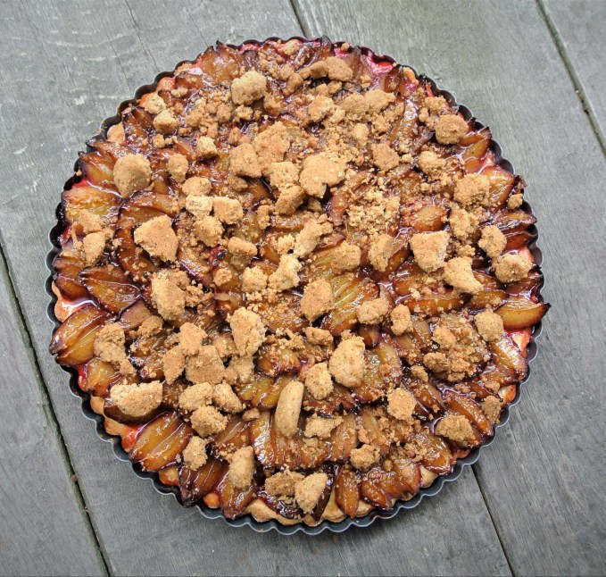 Hefe- und Nussmürbeteig verkneten, in eine runde Form ausrollen und in die eingefettete Tarteform legen. Den Rand leicht hochziehen. Anschließend mit Zwetschgen belegen. Und hier wichtig: wenn die Zwetschgen zu saftig sind, den Boden leicht mit Brösel bestreuen. Diese saugen den Zwetschgensaft auf, welcher dann auch beim Backen entsteht. Nach dem Belegen leicht mit Zimt-Zucker bestreuen und in den vorgeheizten Backofen bei 190 Grad etwa 30 Minuten backen.